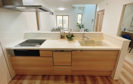 コンロをIH・シンクを人工大理石にすることで、すっきりとしたデザイン性のある魅力的なキッチンに。